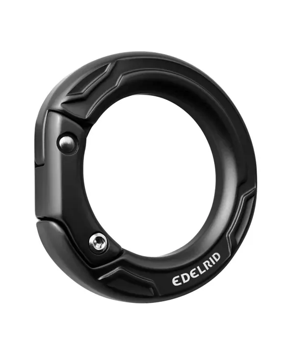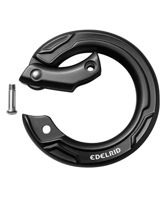Openable ring for permanent connection of load-bearing components in all directions. CUPID is designed with a single screw and no additional individual parts. The screw is never loaded along its axis and the ring remains closed under load even if the screw is dropped. The 12 mm opening width makes it easy to install rope ends, loops and metal components.