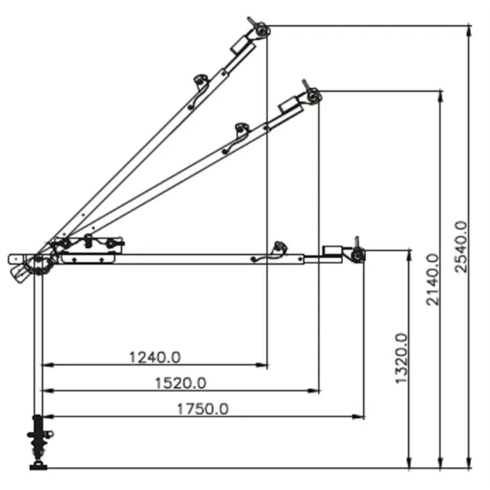 - 1.32 m / 2.54 m / 3.14 m (extended arm)