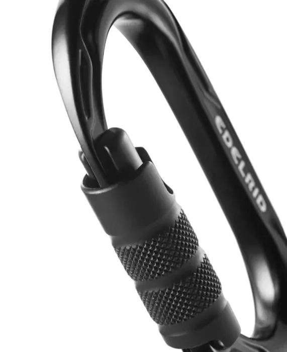 Small and light oval carabiner with triple locking mechanism. The oval shape provides a large capacity and makes it easier to position the equipment optimally.