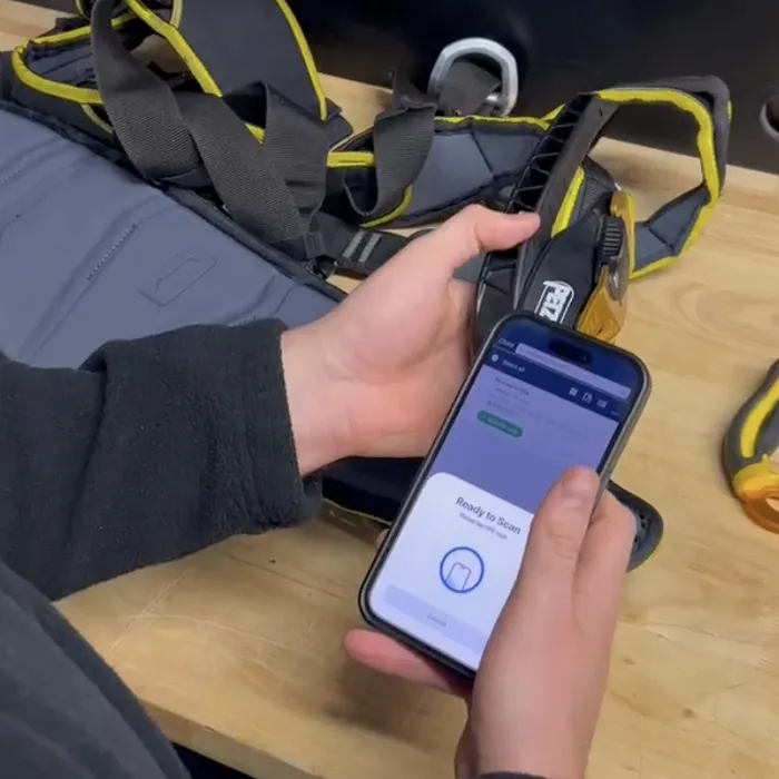 NFC tag that speeds up the process significantly during inspections as you do not have to look for and manually write off serial numbers during the annual PPE inspections. The tag is based on NFC (near field communication), you only need to hold the mobile phone against the tag to get the serial number. It also provides increased protection for the identification of the product by adding a way to identify it. The tag is attached via adhesive and sticks to all types of materials. Dimensions: 19x19 mm