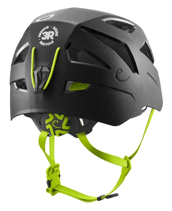 The ZODIAC 3R helmet from EDELRID is an innovative and sustainable helmet that is the first partially recycled helmet on the market. The outer shell is made of 100 % recycled polyamide from climbing ropes, while the EPS inner shell is also fully recycled. Despite the sustainable materials, the helmet does not compromise on safety, comfort or ventilation.