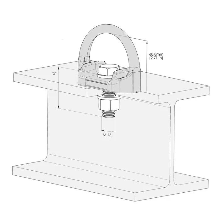 Föranrkingspunkt från Skylotec. AP-TYP-47-serien är tillverkad av härdat stål, testad i enlighet med EN 795 och CEN/TS 16415 och testad för en belastning på upp till 3 personer. I leveransen ingår ett fästset bestående av bult och mutter.