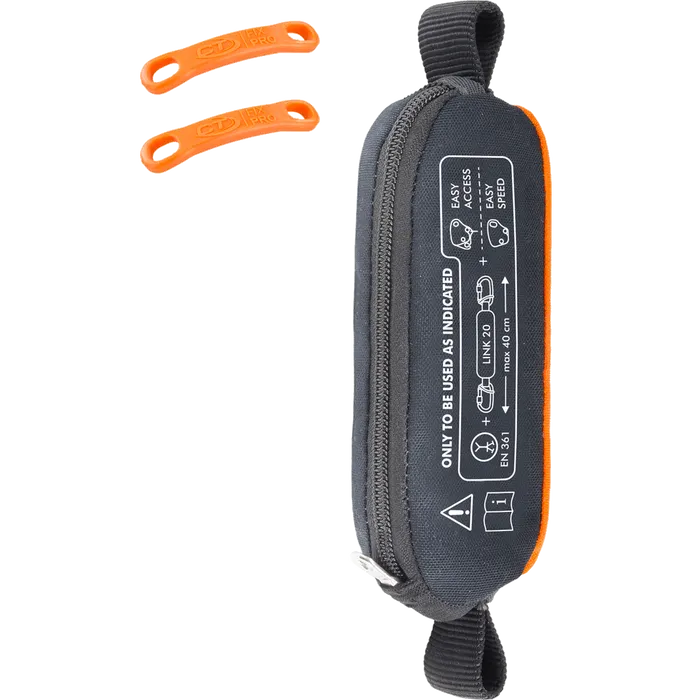 Den ger användaren ökad rörelsefrihet jämfört med en vanlig säkerhetslina. Dessutom är den utrustad med en dragkedjeficka som skyddar den mot slitage samtidigt som den möjliggör enkel inspektion av komponenten.