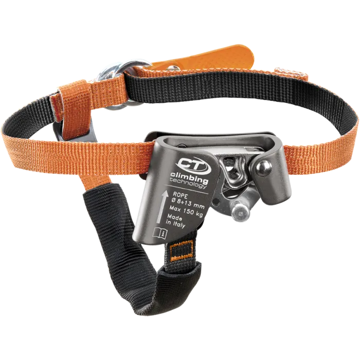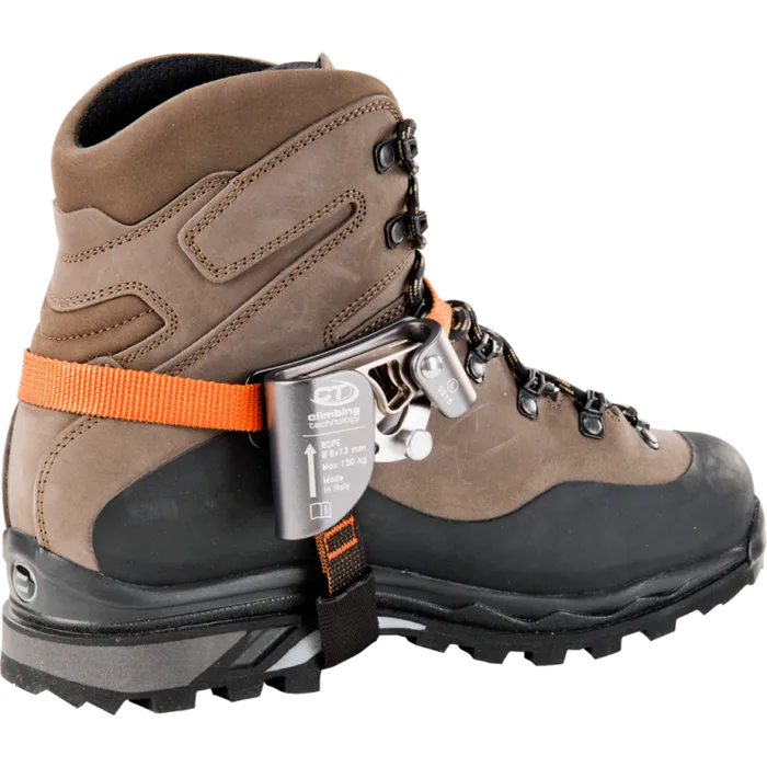 Repklämma till högerfoten. Använder du den tillsammans med Get-up och Chest går det snabbare att klättra i rep. Självrengörande kam som möjliggör funktionen även på smutsiga och isiga rep.