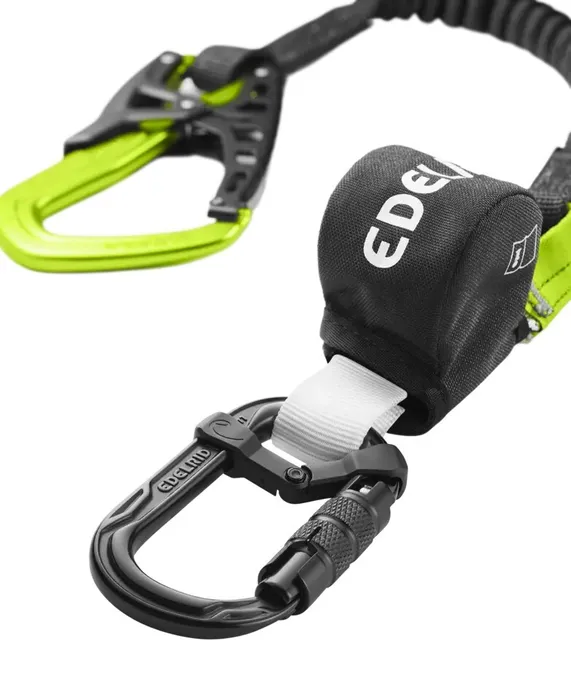 Edelrid SHOCKSTOP-I 140 ONE TOUCH är en lätt och kompakt lanyard. Den har en elastisk arm och ONE TOUCH II handkarbinhake för enkel hantering vid självförankring eller vid användning på arbetsplattformar och riggjobb.