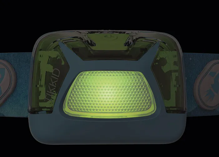 Ljusstyrkan är 20 lumen och ger barnen perfekt ljus för att leka eller läsa i mörker. Med ett lägre lumental skyddas barnets ögon eftersom risken att bländas minskar. Lampan har en knapp för att skifta mellan de tre ljuslägena, starkt, lågt och pulserande. Tikkid har en självlysande reflektor som gör det lätt att hitta lampan om man tagit av den och lagt den i mörkret. Pannbandet har en ny konstruktion som gör den lättare att ta av och på och justera så den sitter bra på huvudet – både med och utan mössa. Batteriluckan är skyddad med en liten skruv för att inte kunna öppnas av barnet.